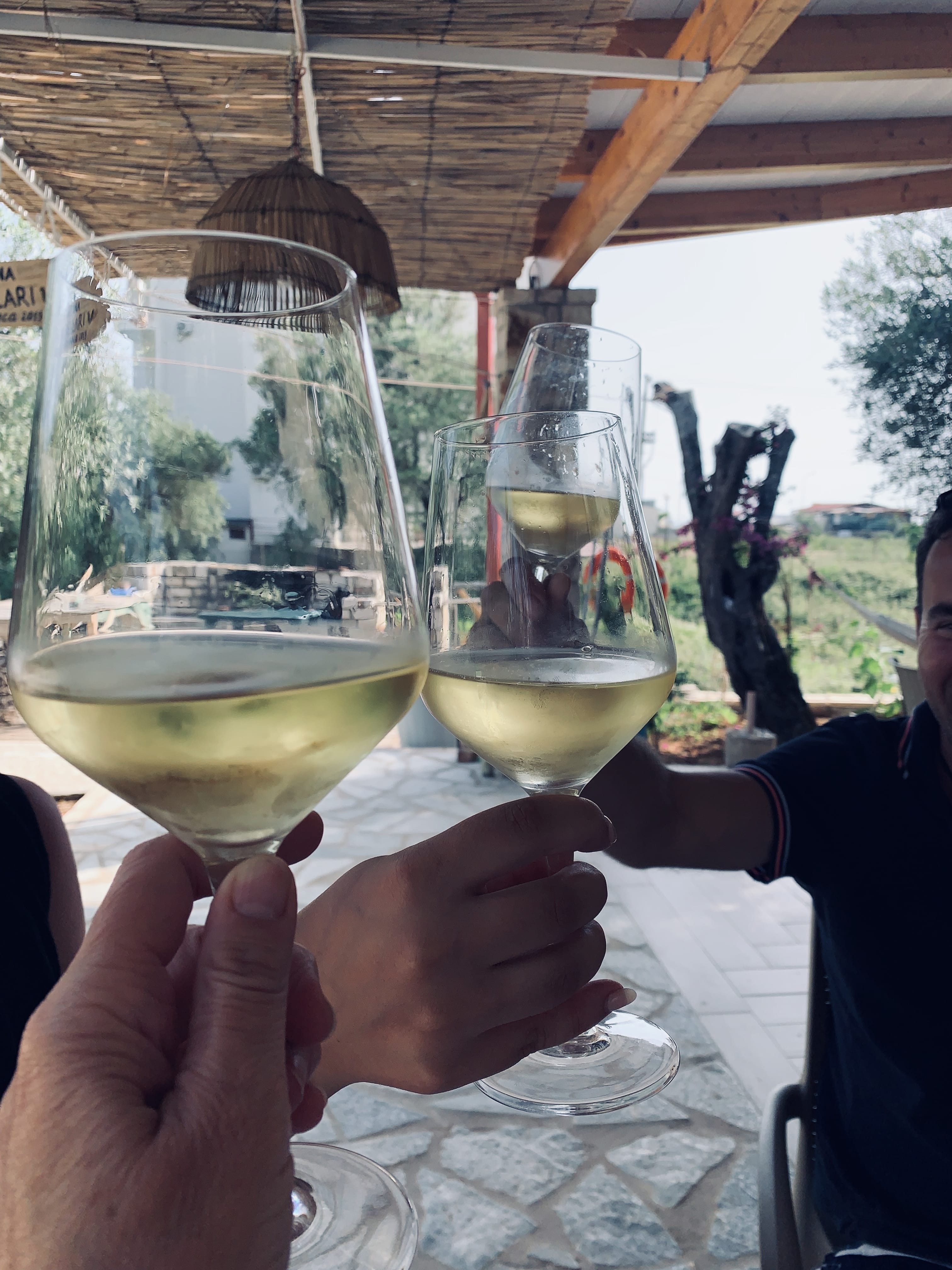 But before leaving Berat completely, Henry surprised us with a stop at the Cobo Winery, tucked into rolling hills and vineyards. It was the perfect place for a quick break—some wine tasting, a few bottles to go, and a happy stumble back to the van. I mean, is there ever a bad time for wine tasting?