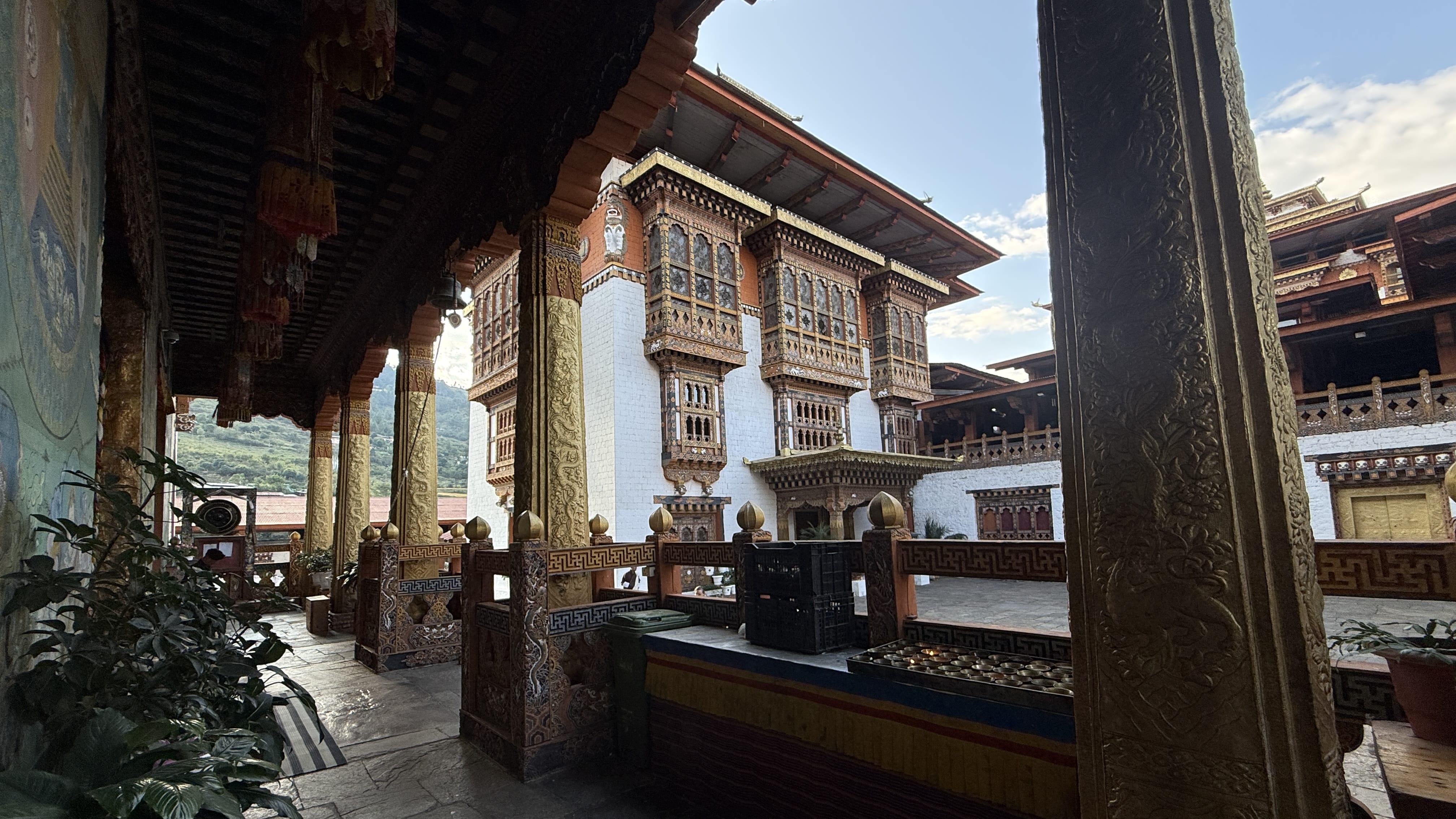 Our final stop before the hotel was Pangrizampa College of Astrology and Astronomy. The temple here felt noticeably darker than others we’d visited — deep blacks, rust tones, and earthier colors instead of bright reds and golds.