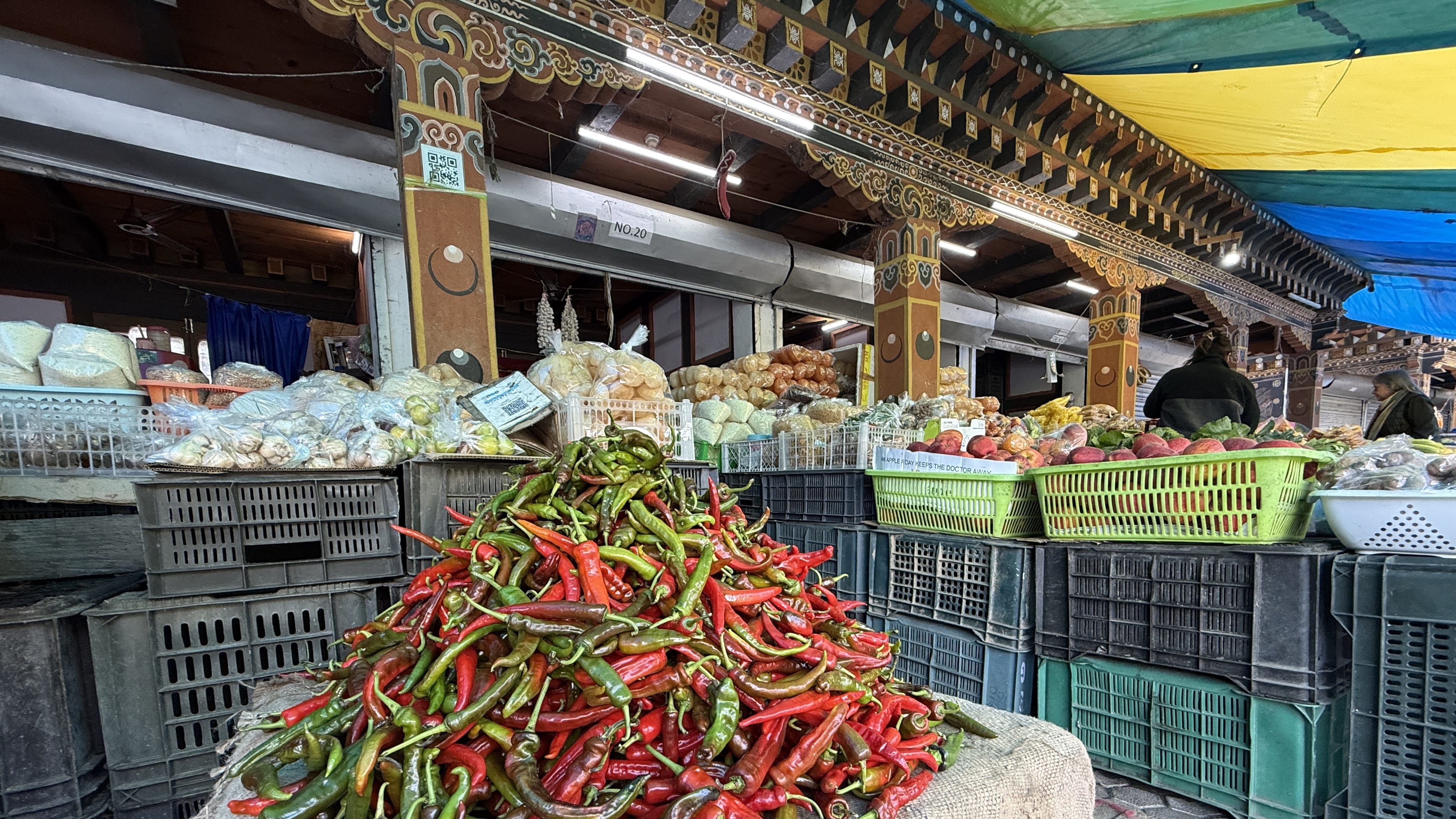 Near Haa Valley, rooftops were covered in bright red chilies drying in the sun, like a patchwork quilt spread across the hills. I’d seen chilies drying in other parts of Bhutan, but nowhere near this many rooftops covered at once. They clearly love those chili peppers.