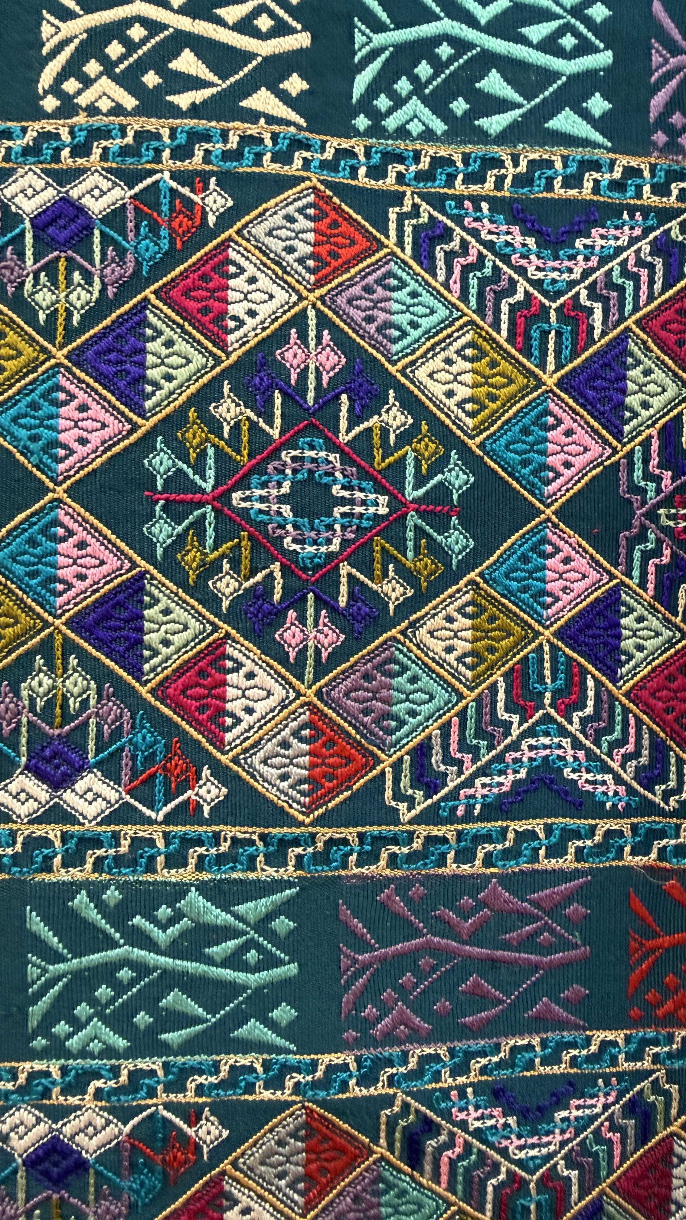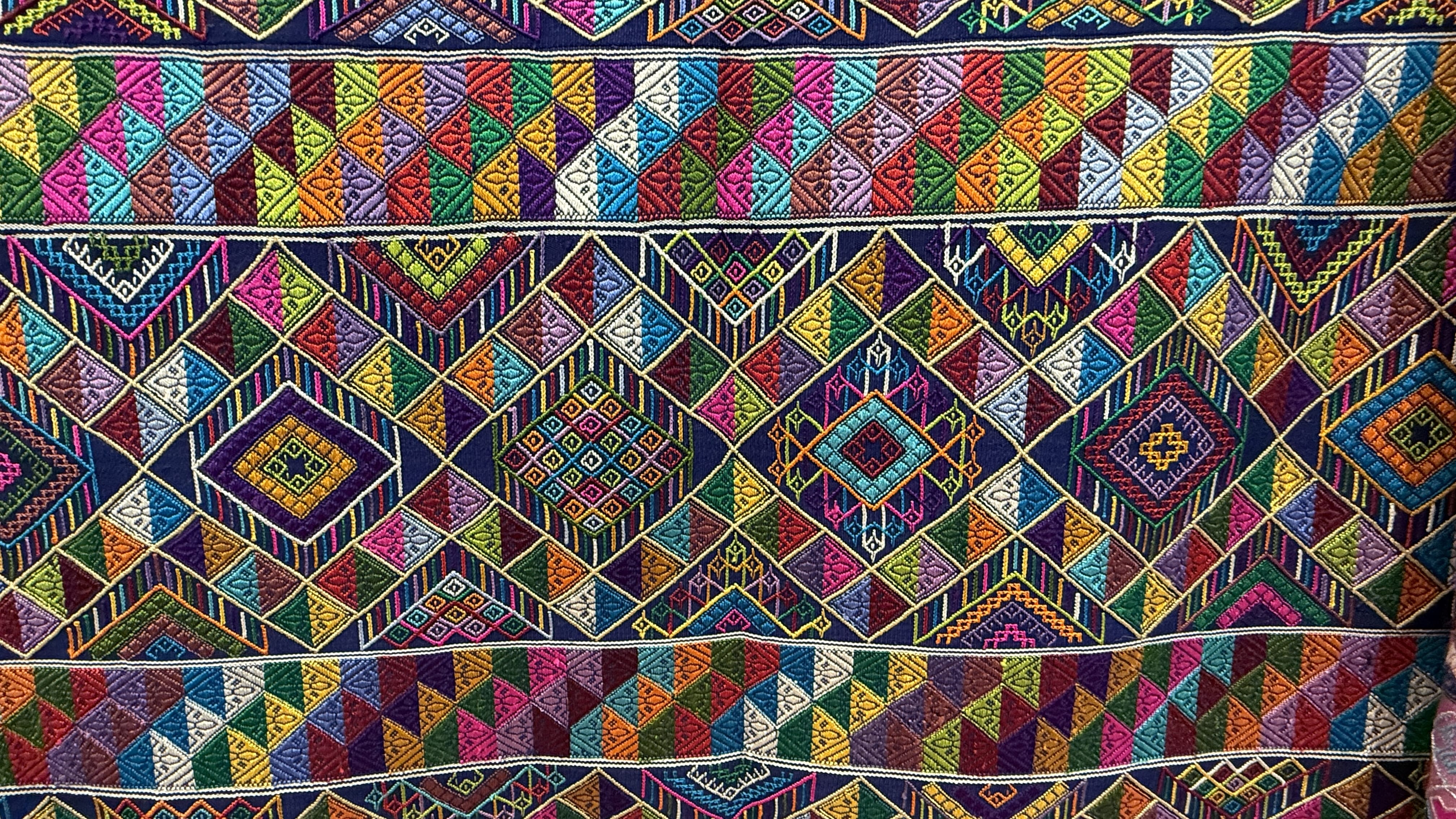 Upstairs in the showroom, the finished pieces were striking—bold colors, geometric designs, and incredibly detailed workmanship.