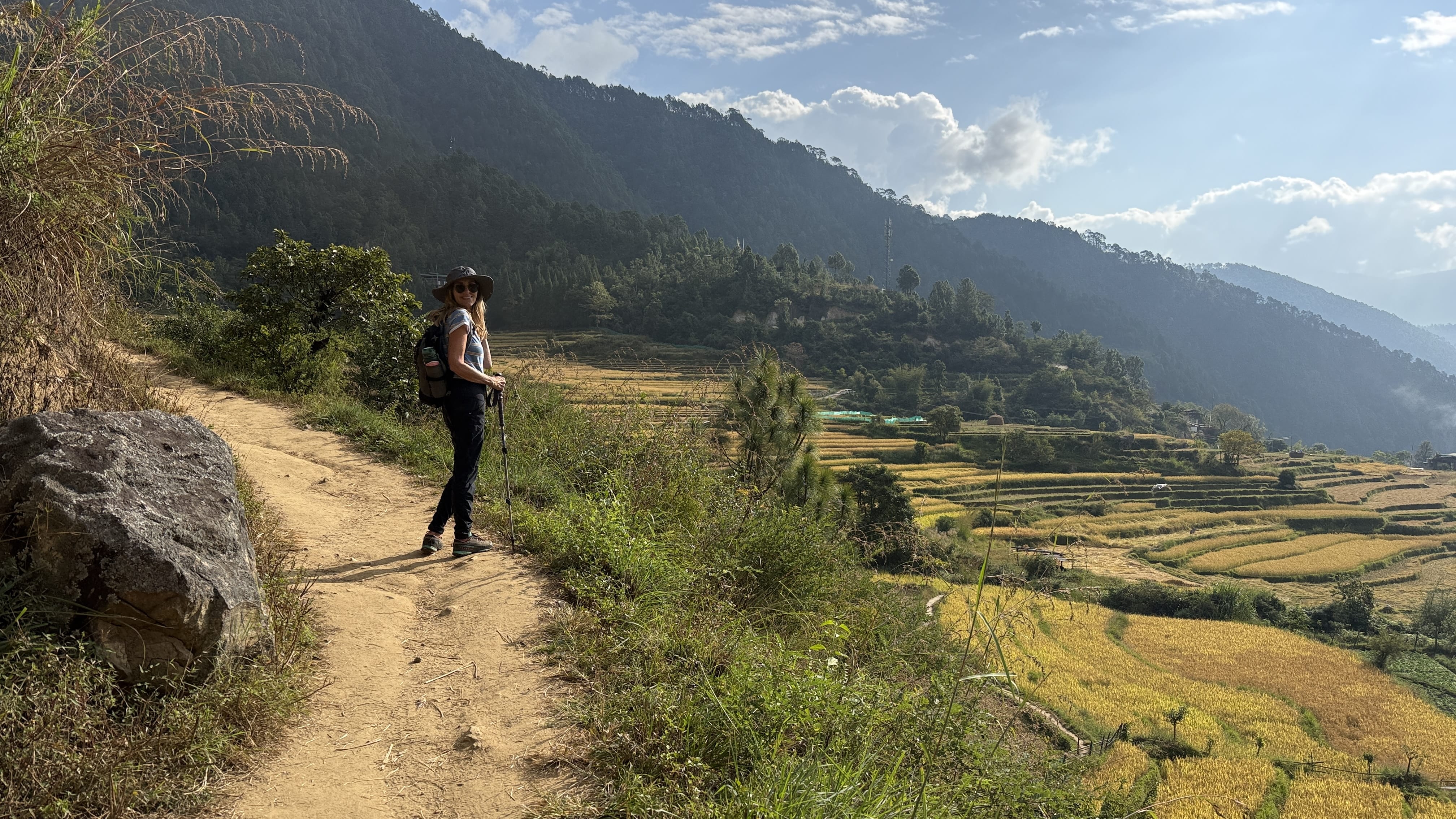 By the time I reached the top, the chorten felt almost suspended above the valley, bright and intricate against the muted greens and golds of the terraced fields below. It was beautiful, but also quietly calming.