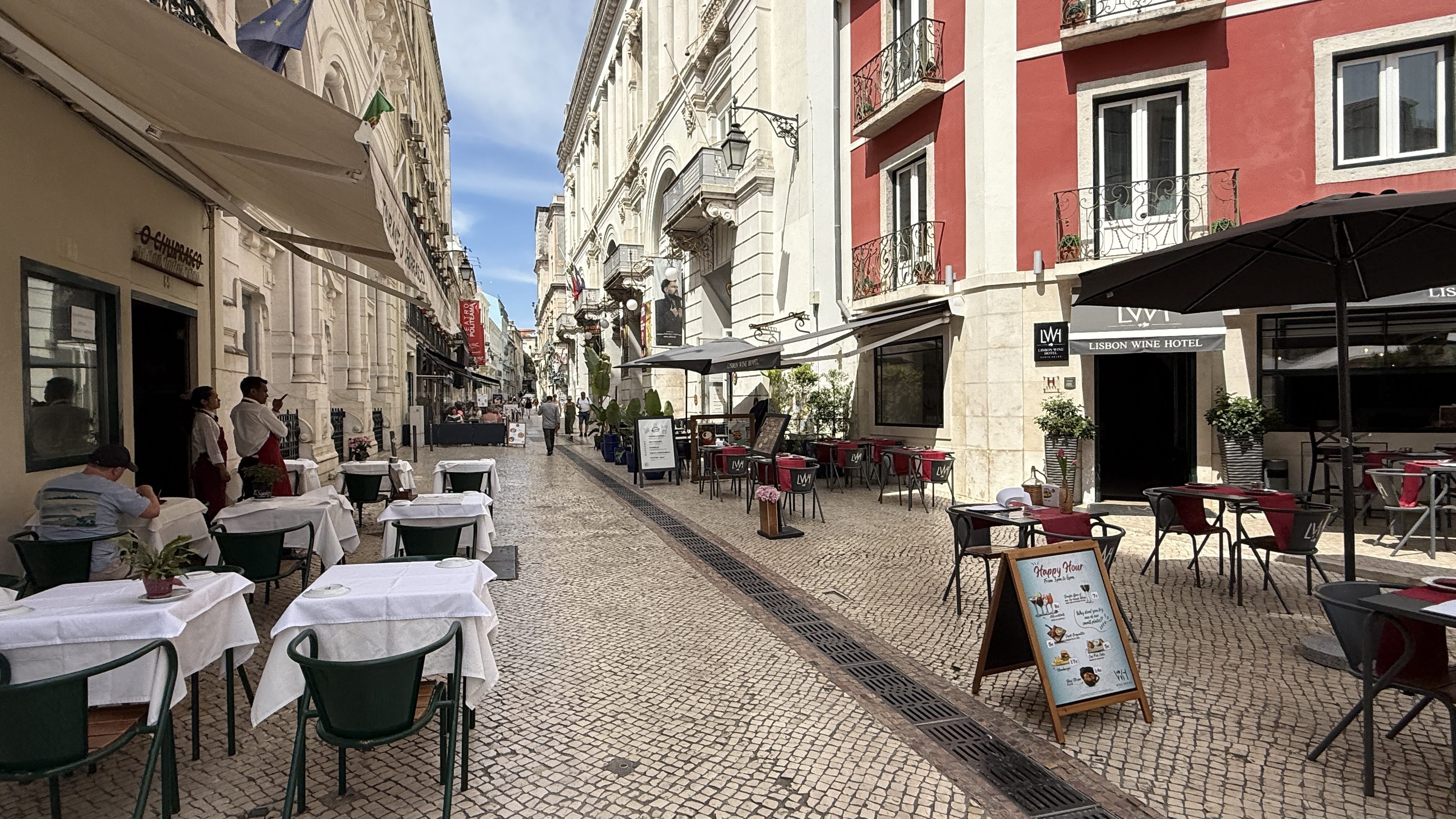 I cut down through Misericórdia, another neighborhood with some of the most beautiful mosaic sidewalks I’d seen yet, and then walked along Pink Street. Once Lisbon’s red-light district, it’s now been reinvented into one of the city’s nightlife hubs — bars, clubs, and late-night cafés line the block. When I walked through in the daytime, it was quiet, but you could still feel its energy.