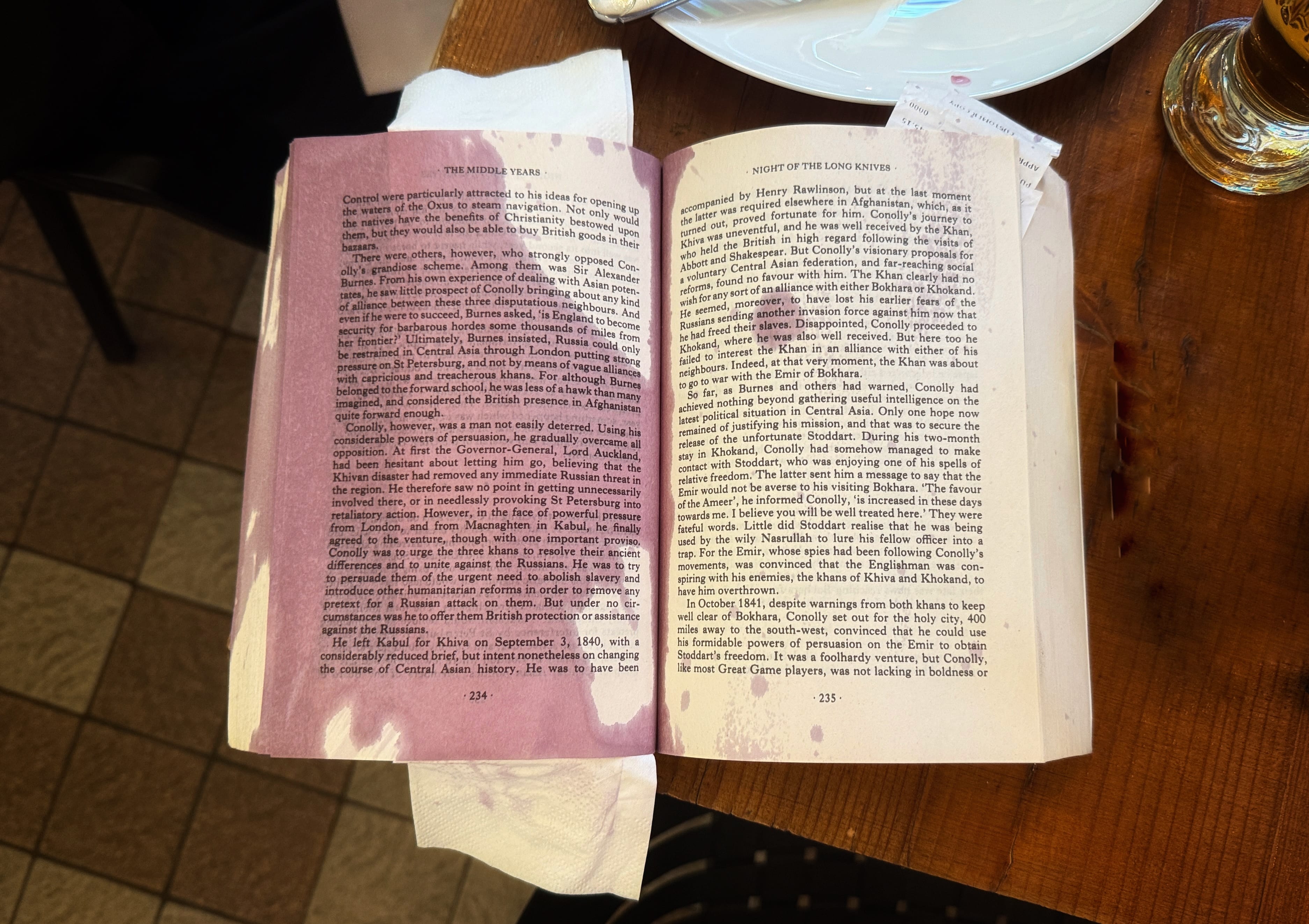 He wasn’t thrilled, of course, but I apologized over and over, and he eventually said it was fine — an accident. I joked that he’d think of me every time he opened that now-permanently-purple book. For the record, the beans were terrific — and so was the wine once I refilled my glass.