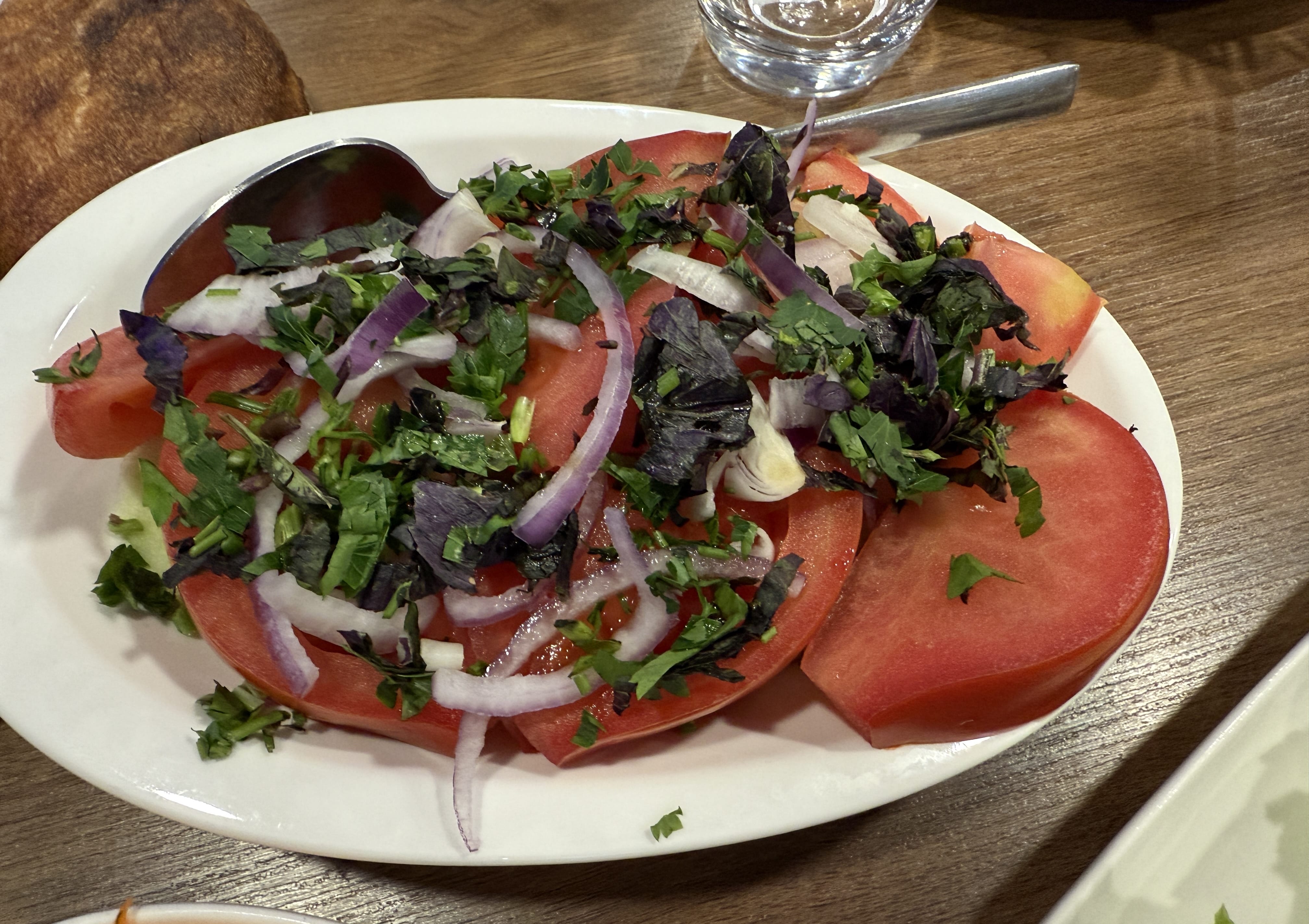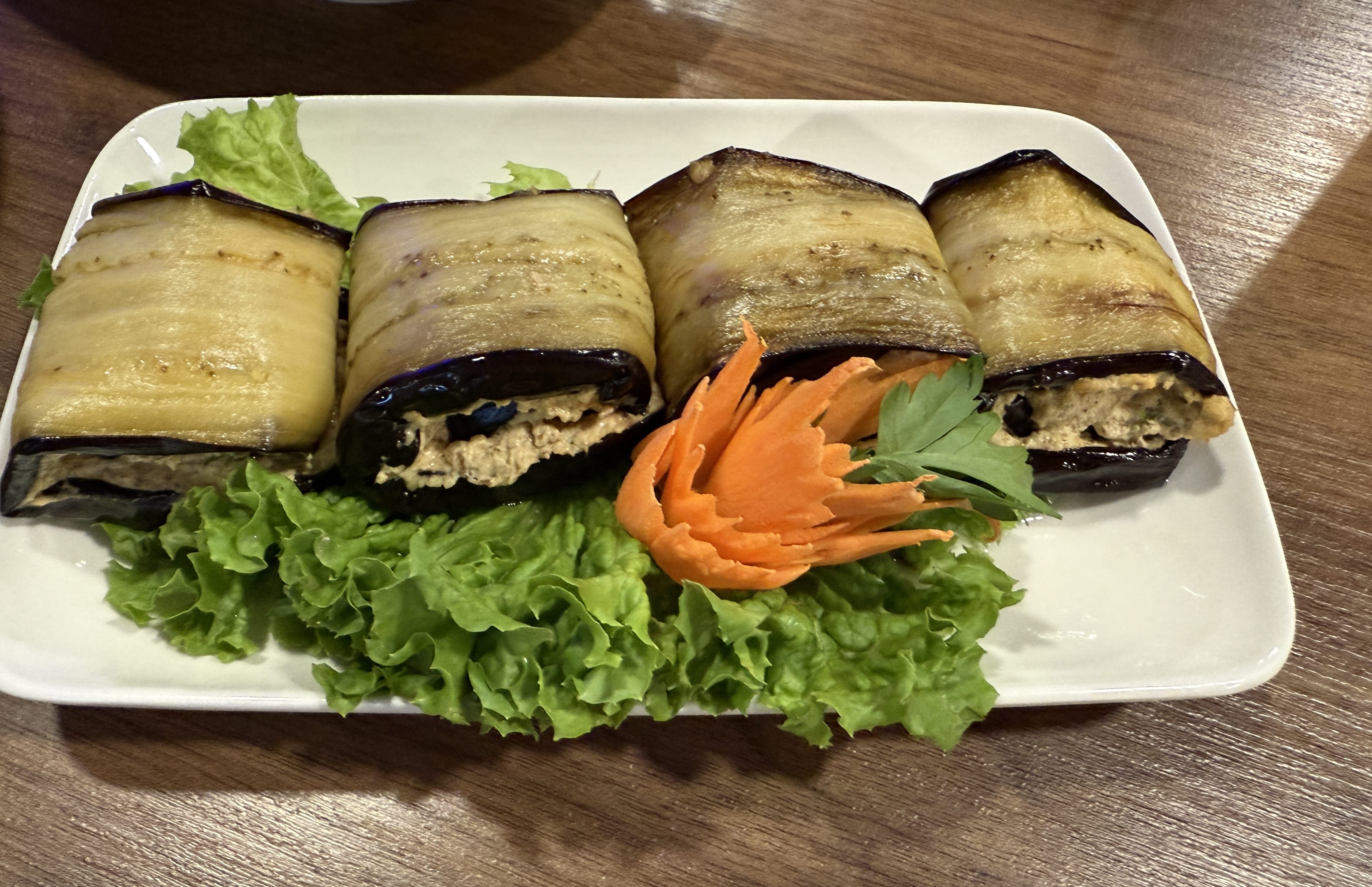 I sat on a red-cushioned bench and ordered eggplant roll-ups (again). Lilea’s version was a bit different from the others I’d had around Georgia — lighter, not as walnut-heavy, almost more delicate. Not better or worse, just their own spin.