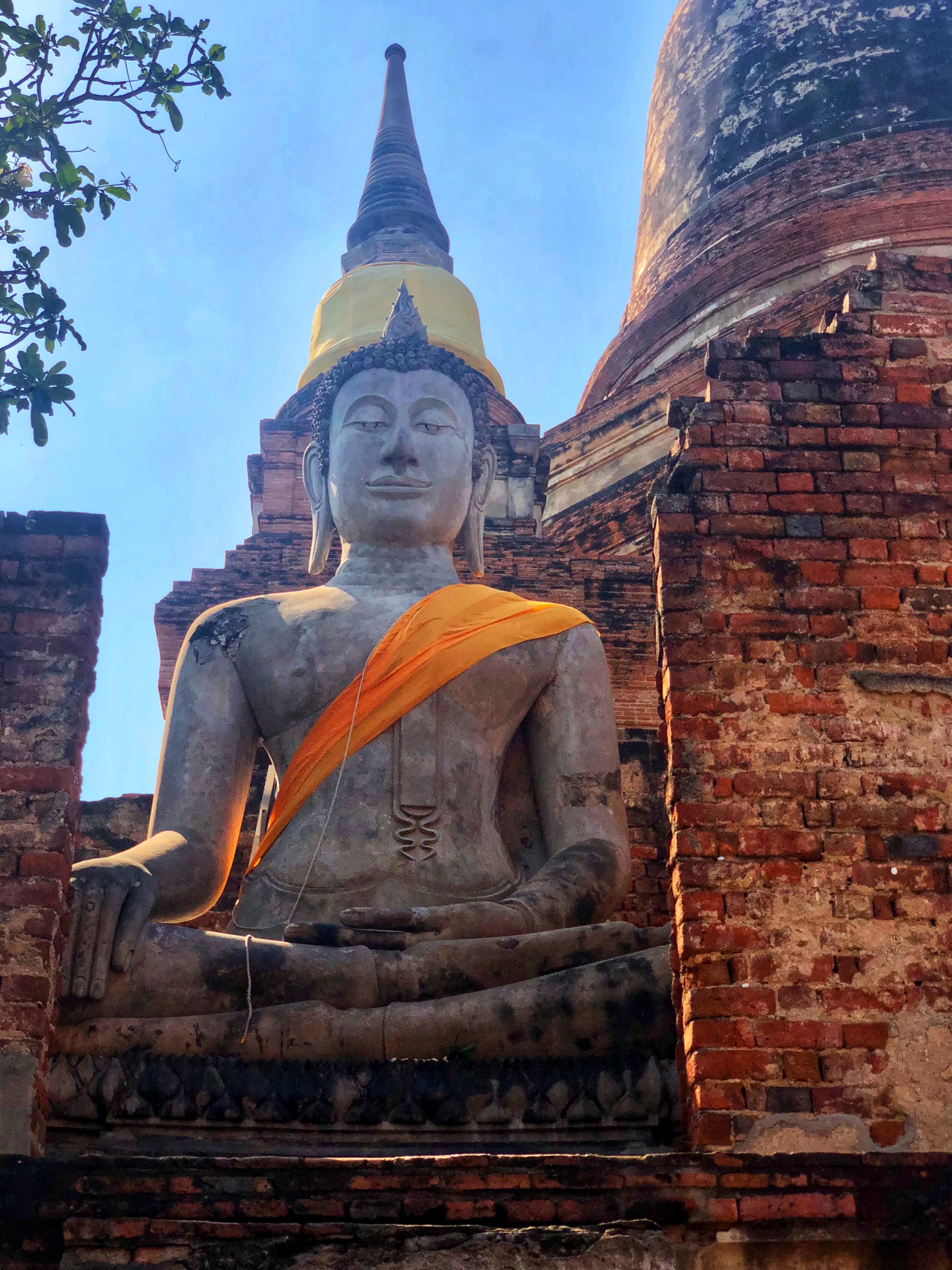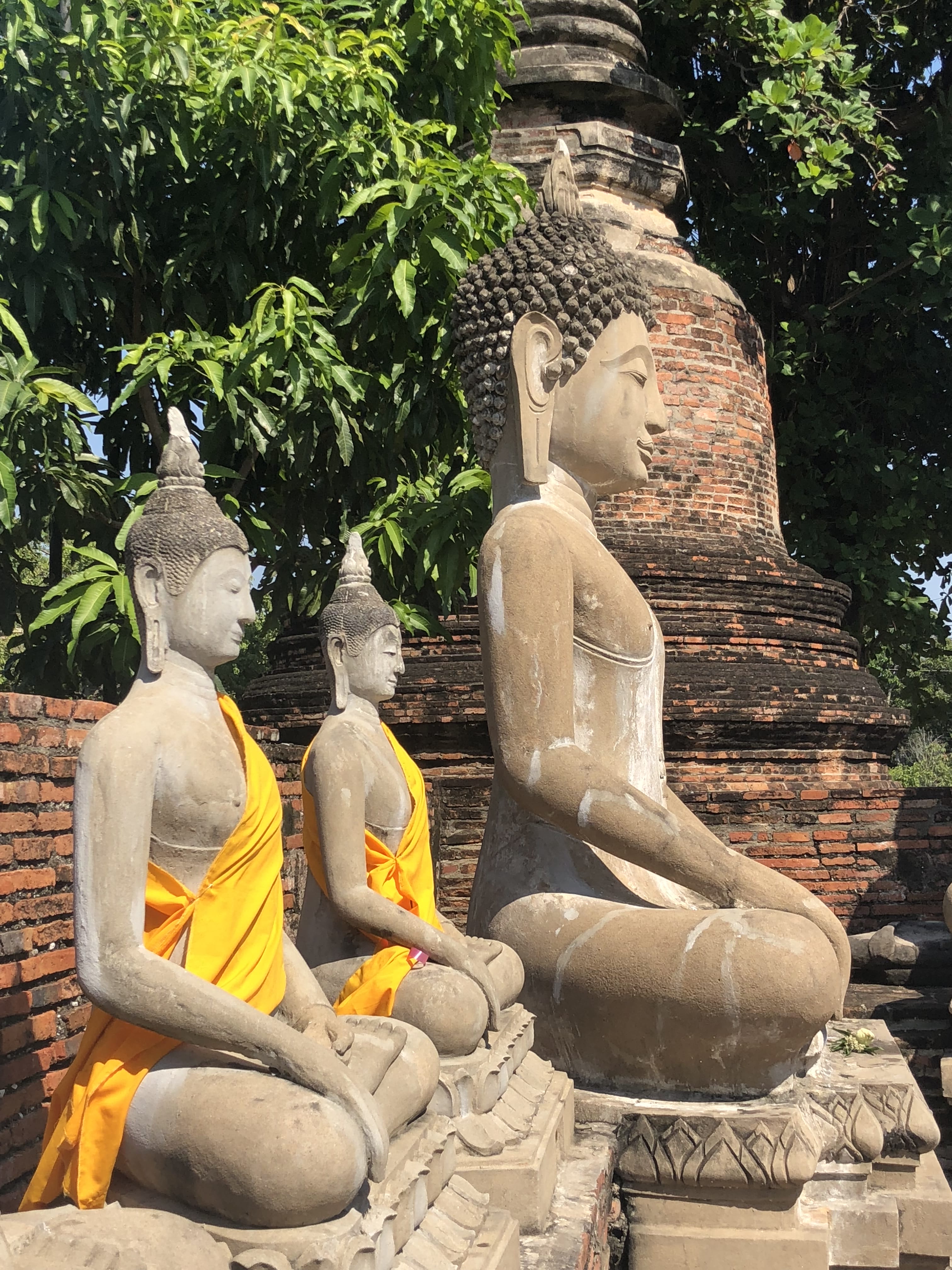 After Wat Mahathat, we continued on to Wat Yai Chai Mongkhon, known for its large chedi and long rows of seated Buddhas draped in saffron cloth. It felt more open and expansive, with a different energy than the quieter ruins we’d just walked through.