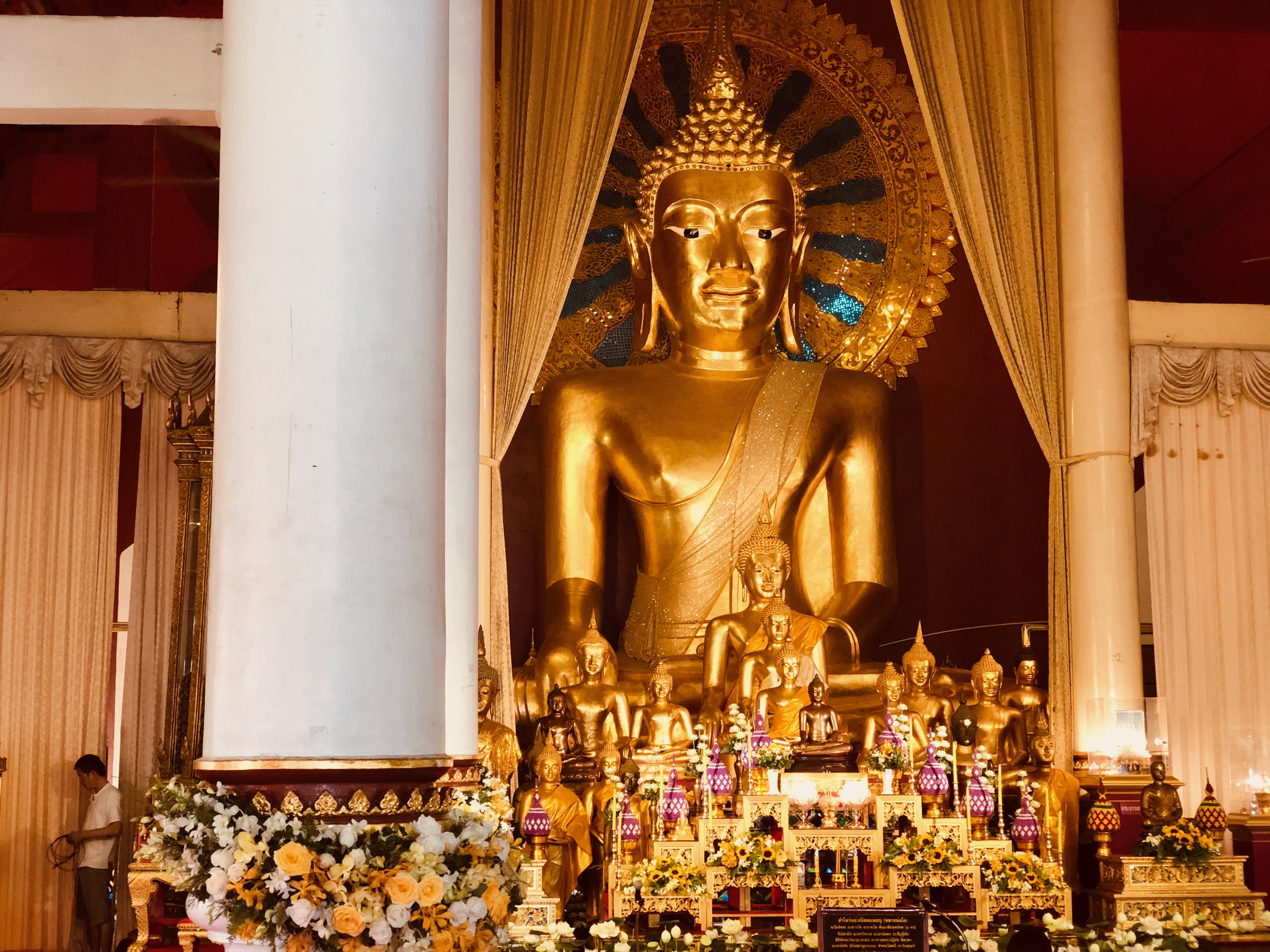 Ornate Buddha statues inside the main hall at Mahachulalongkornrajavidyalaya University.