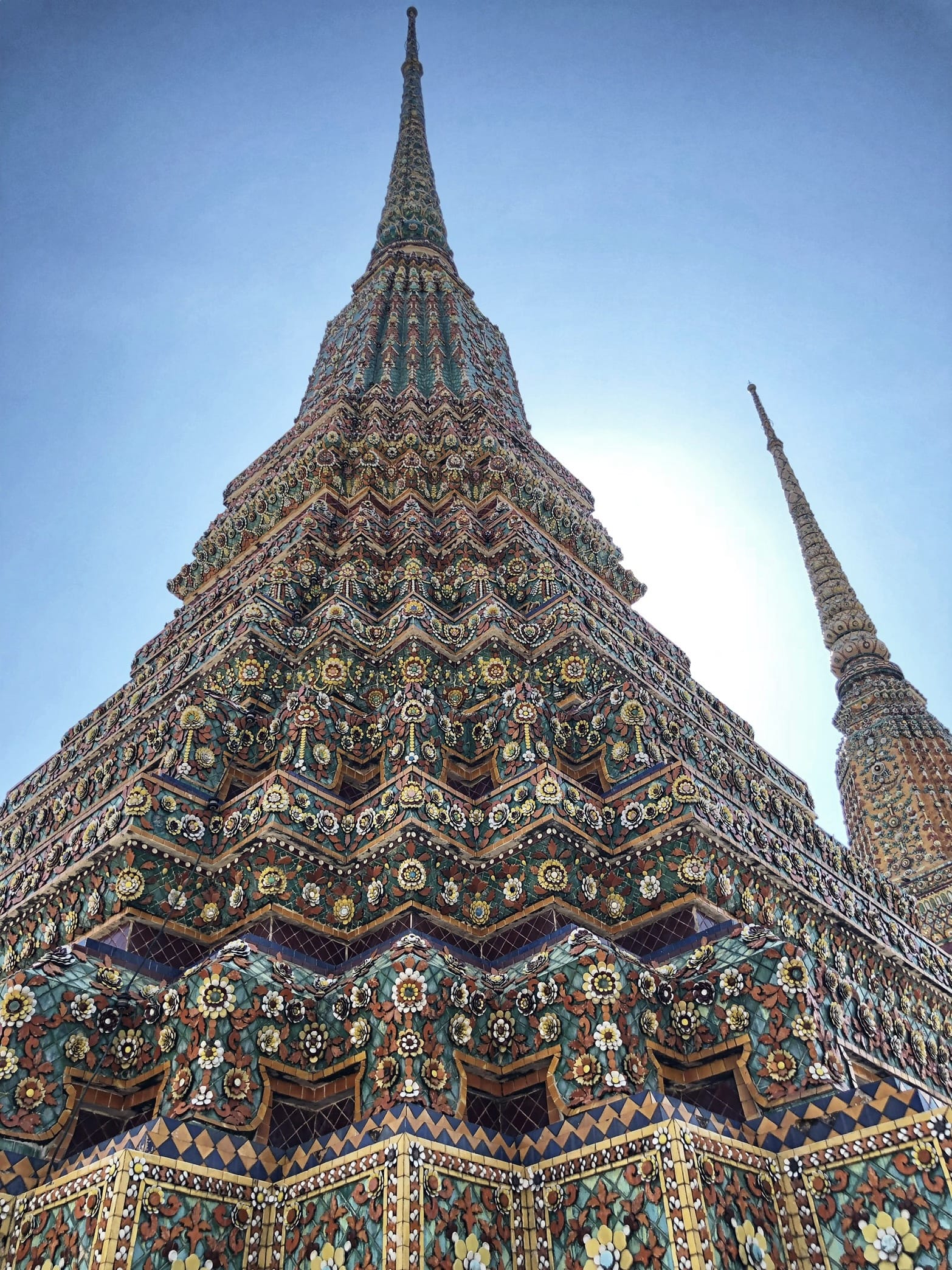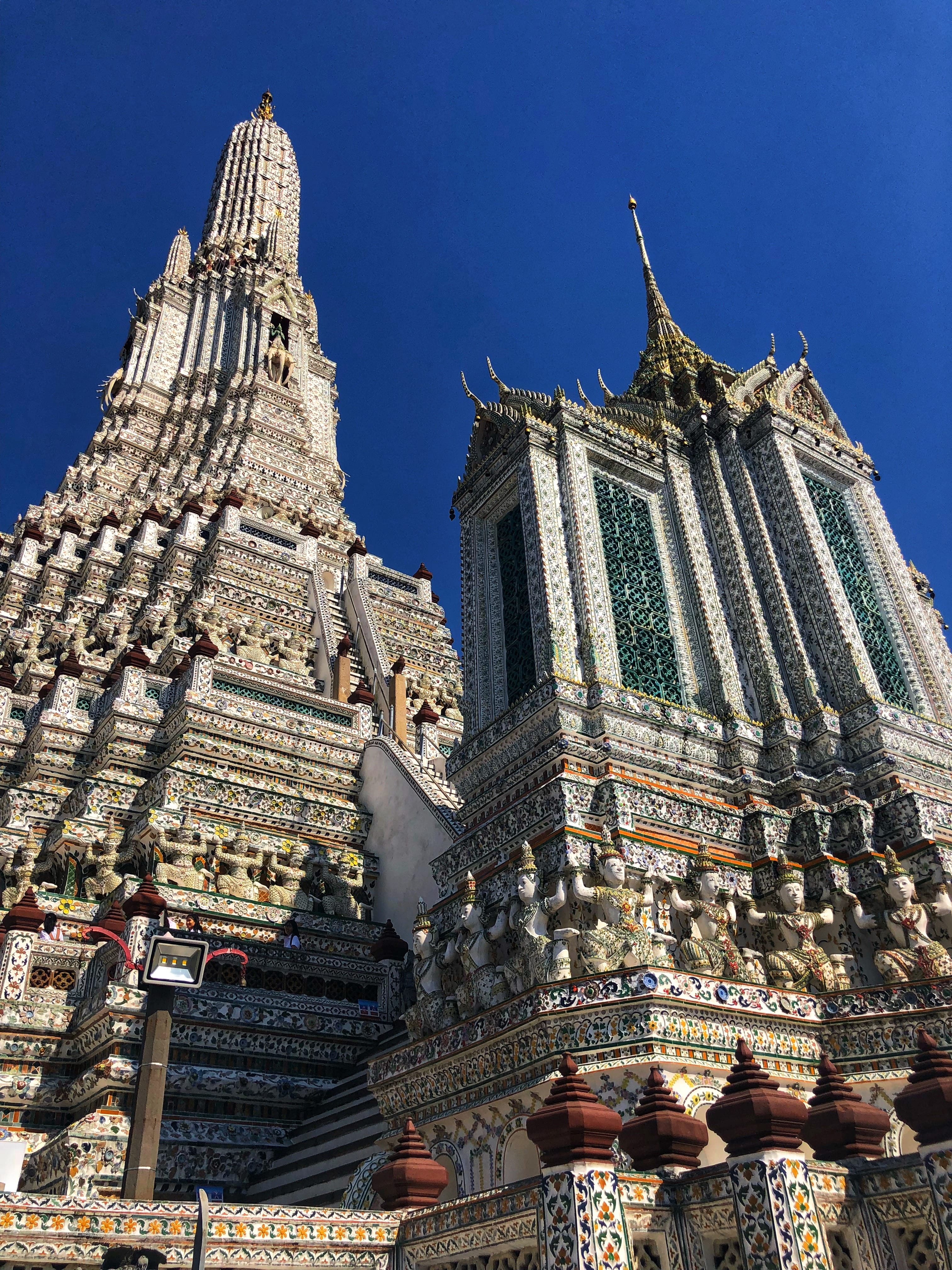 After the boat ride, we visited Wat Arun, the Temple of Dawn, its towering spire covered in tiny pieces of colorful porcelain that catch the light and shimmer.