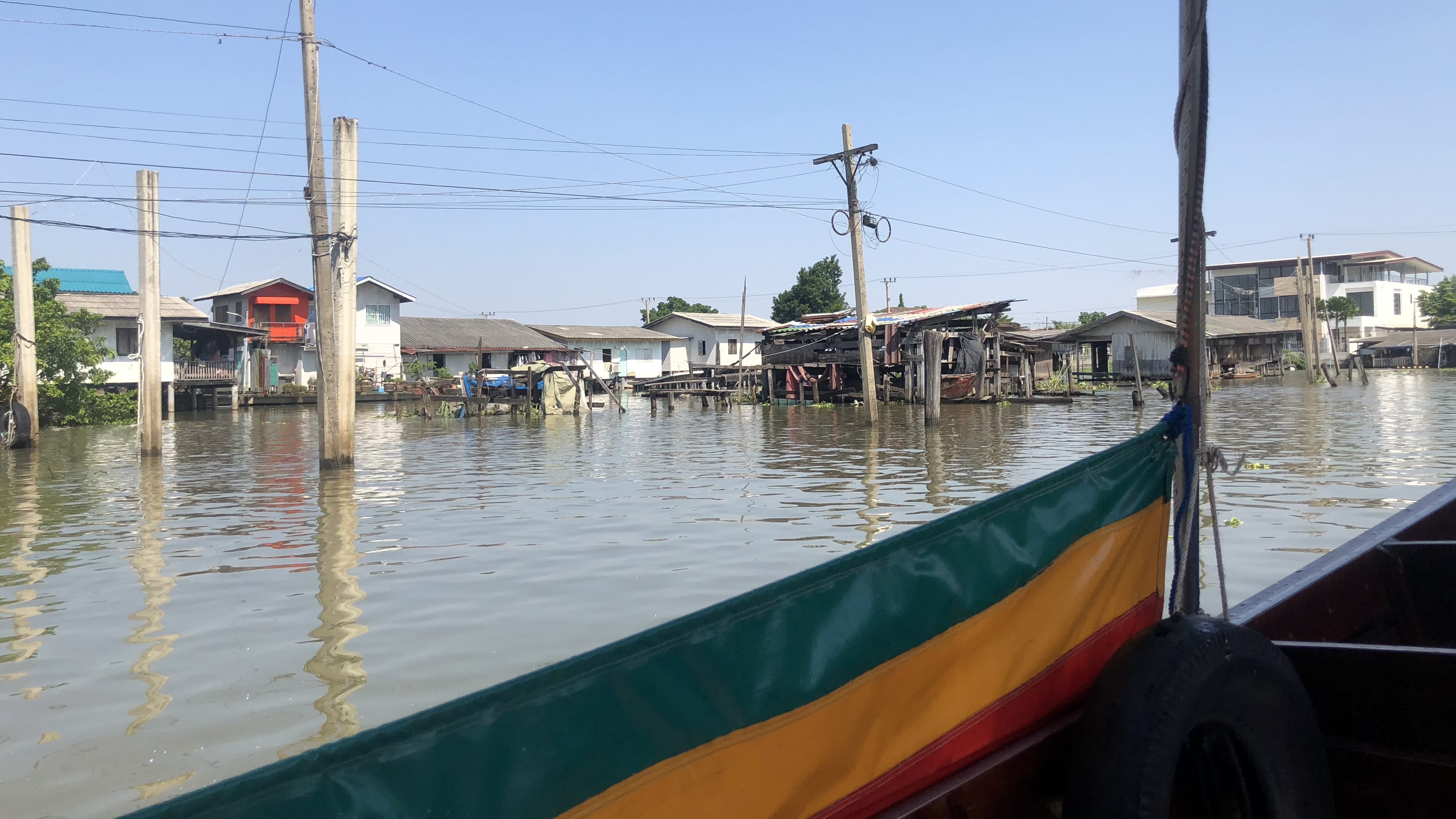 Cruising along, we passed rows of wooden houses on stilts, many weathered and worn, sitting right at the water’s edge and connected by narrow walkways and small docks—intimate glimpses into daily life along the canals.