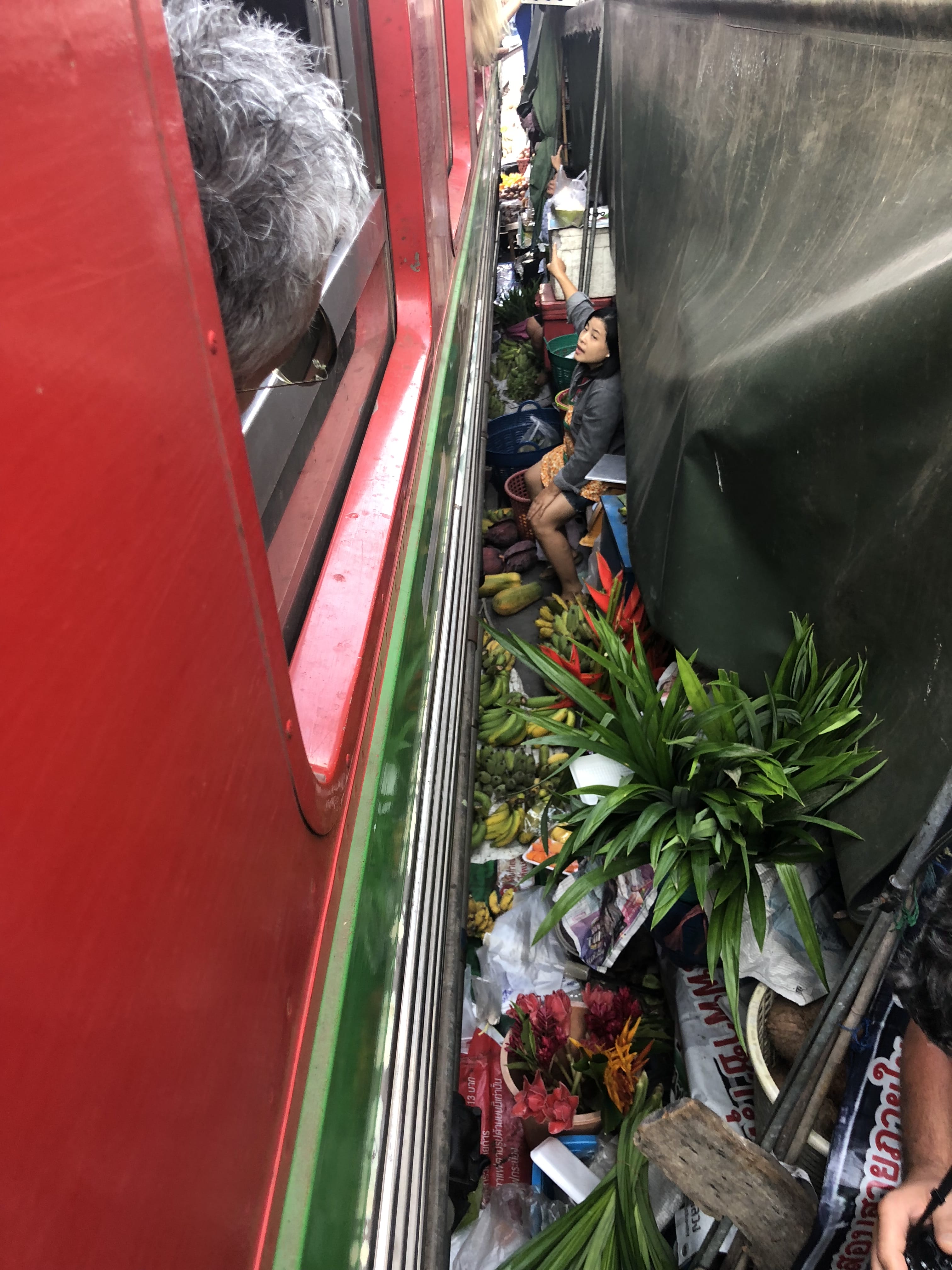 After a quick breakfast, we headed south of Bangkok toward Samut Songkhram, about 80 kilometers away. Our first stop was Maeklong Railway Market, a working market set up directly along active train tracks.