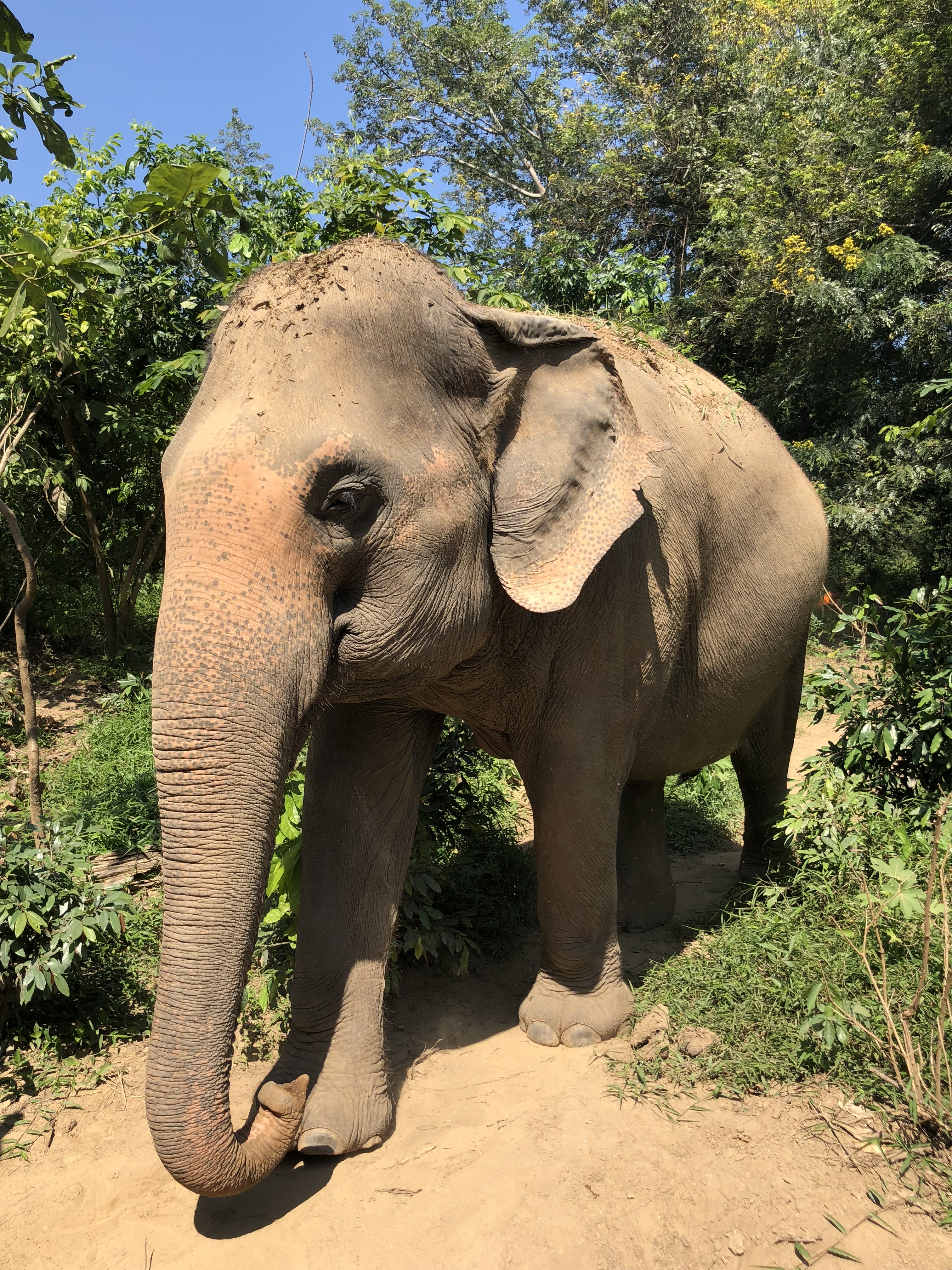 From the market, we headed to Mae Wang Elephant Home. I hadn’t realized we’d be visiting another elephant operation, and I was thrilled to have another opportunity to spend time with elephants. The setting was smaller and felt less structured than the one we’d visited earlier in Kanchanaburi. There was a male elephant named Big Joe, along with a baby who was — unsurprisingly — impossible not to fall for.