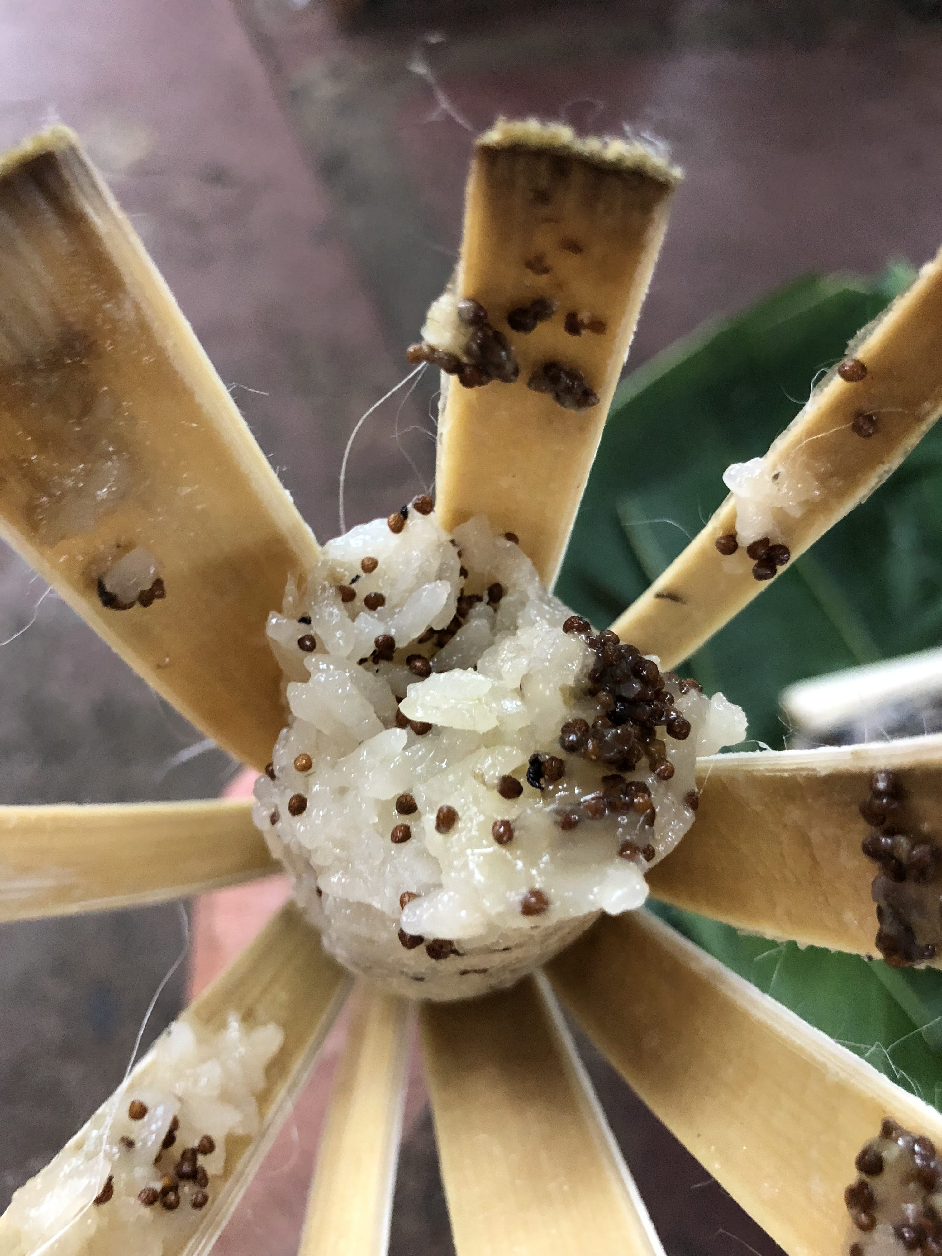 One woman, in particular, caught my eye. She was carefully filling lengths of bamboo with sticky rice, sealing them before they’d be cooked over fire. Some were plain, others mixed with black beans or grains. It was quiet, repetitive work, and oddly mesmerizing to watch—the kind of everyday process you rarely stop long enough to notice.