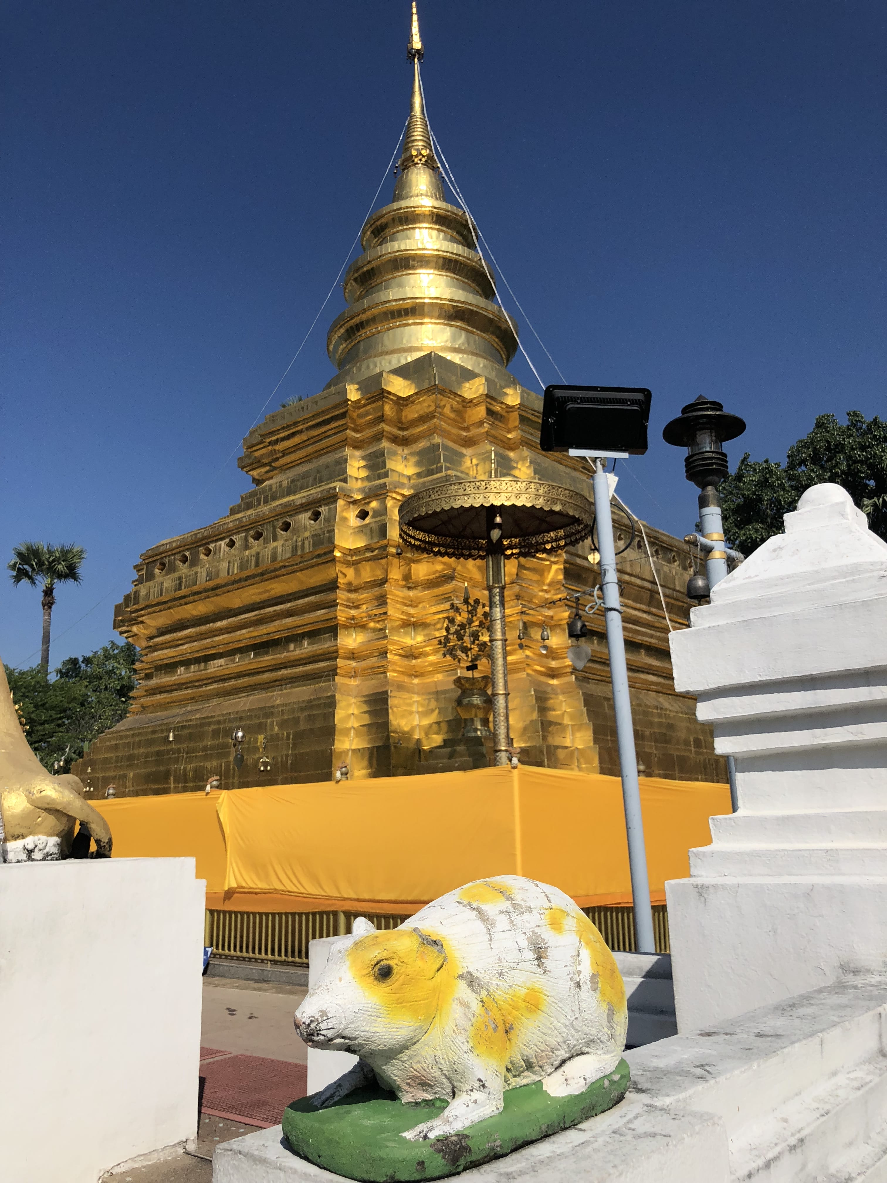 Our final temple stop was in the Chom Thong area, at Wat Phra That Si Chom Thong . The temple grounds were dotted with small rat statues—offerings connected to local beliefs and the Chinese zodiac—leading up to an interior that was strikingly ornate, filled with gold Buddhas and layered decoration. It was one more reminder of how visually dense and spiritually significant Chiang Mai’s temples are.