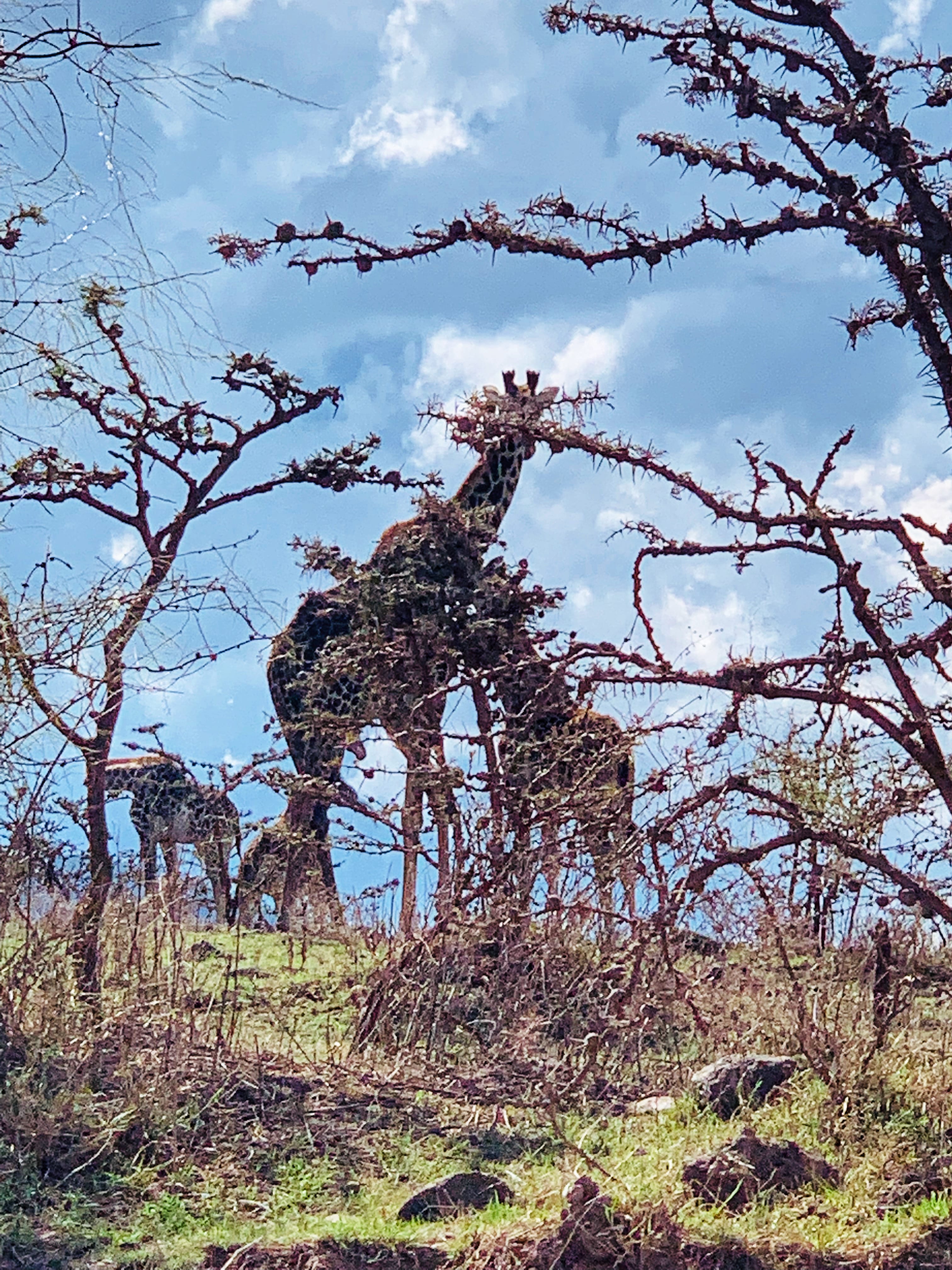 Inside the park, things only got better: gazelles sprinting across dusty patches of earth, more zebra, and the day’s highlight—giraffes leaning into acacia trees with that slow, deliberate way they move. I’d been excited to see them, and they didn’t disappoint. Seeing them up close, in their natural habitat, felt almost unreal.