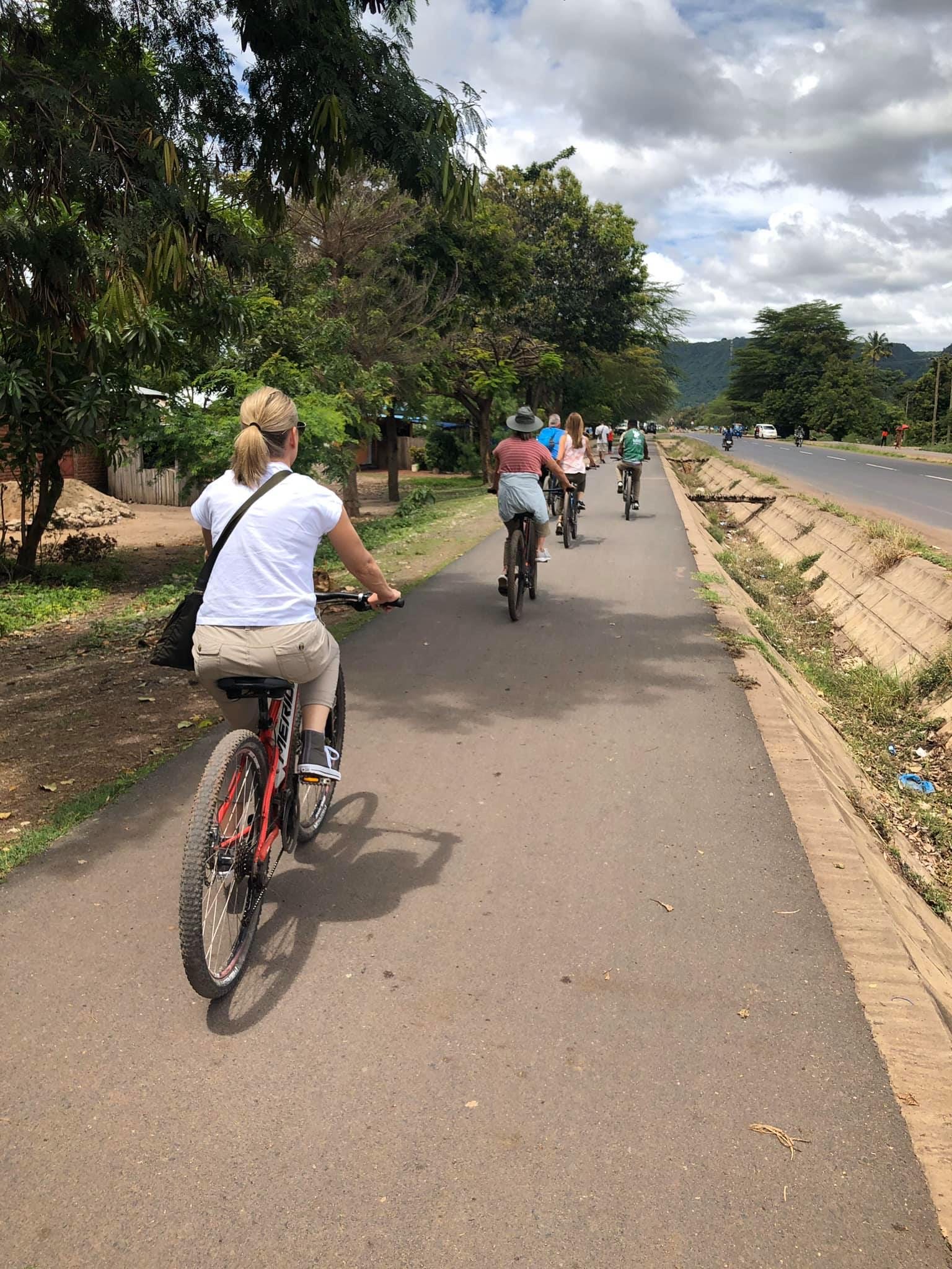 After breakfast and yoga, we headed to Mto wa Mbu—a village a village home to more than 120 different tribes. We did a bike ride with Wayo Biking, pedaling past farms, rice paddies, trucks stacked with bananas, and women walking with enormous baskets balanced on their heads.