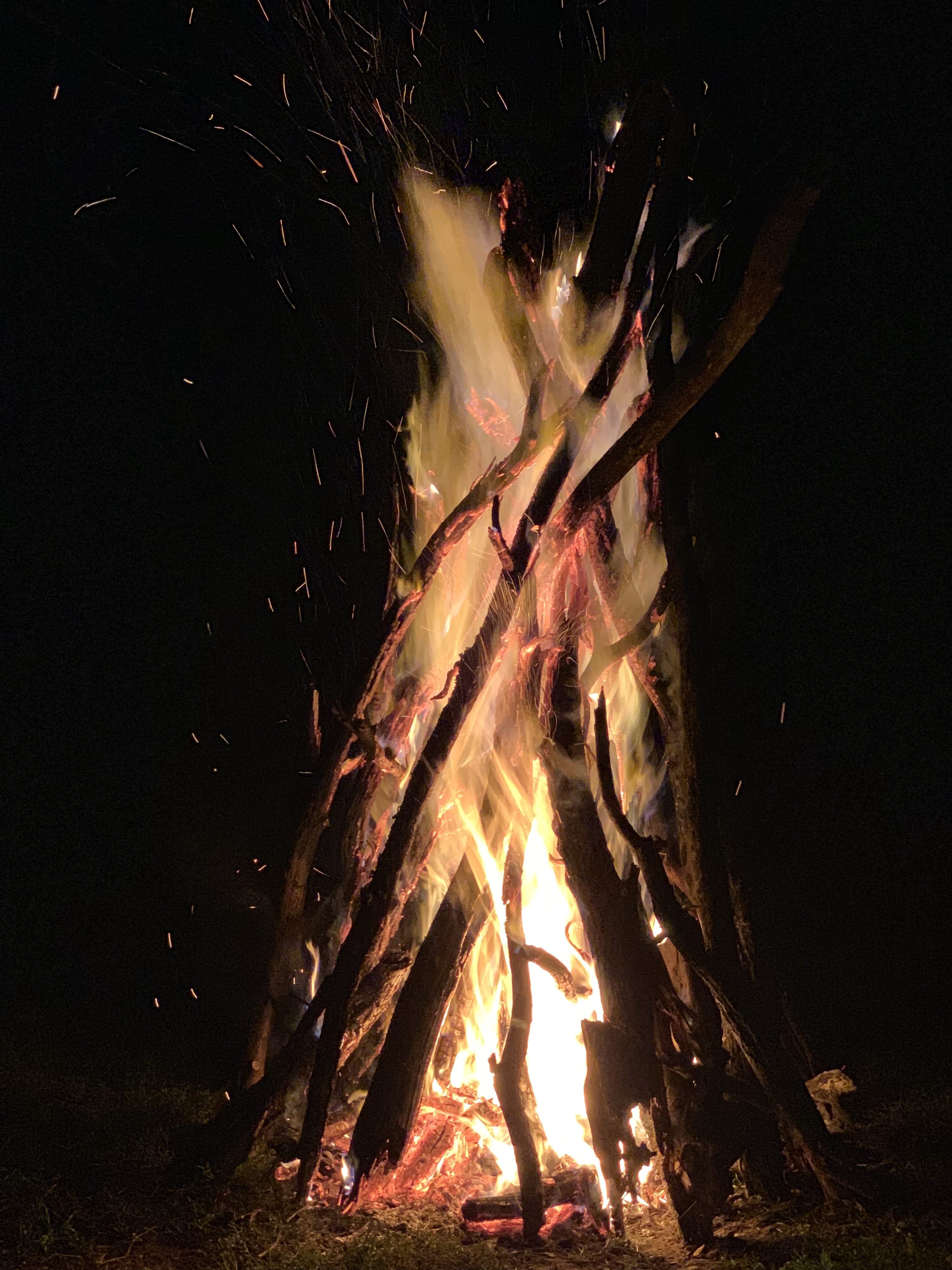 That night we had dinner in the bush—a cookout right in the wild. Tables sat directly on the grass under a simple canvas covering, with lanterns lighting everything just enough. A high fire burned beside us—to deter wildlife, mostly lions. Men tended it constantly, stacking branches and adjusting the wood so it wouldn’t burn down.