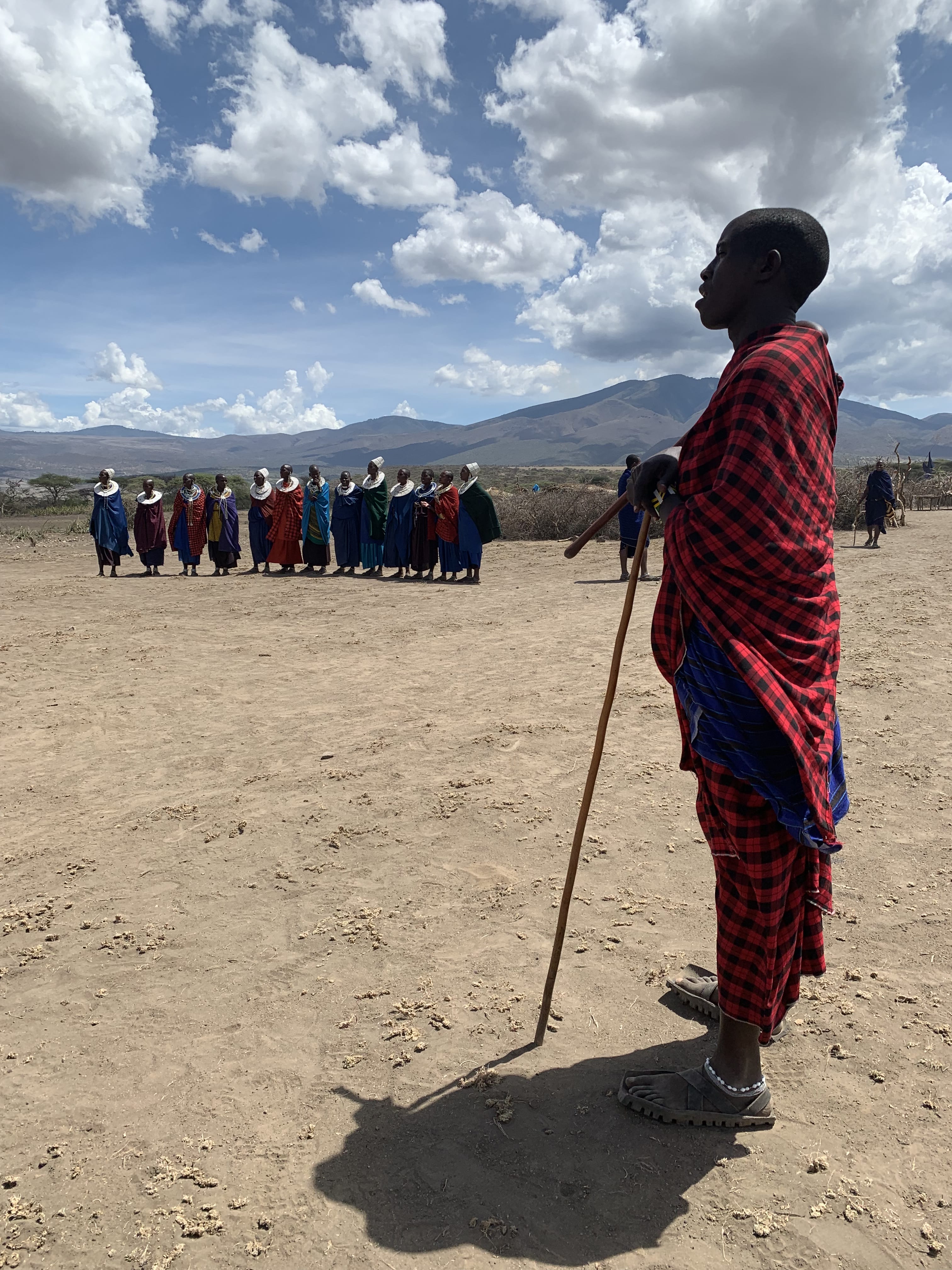 Joining a line dance during our visit to a Maasai village.