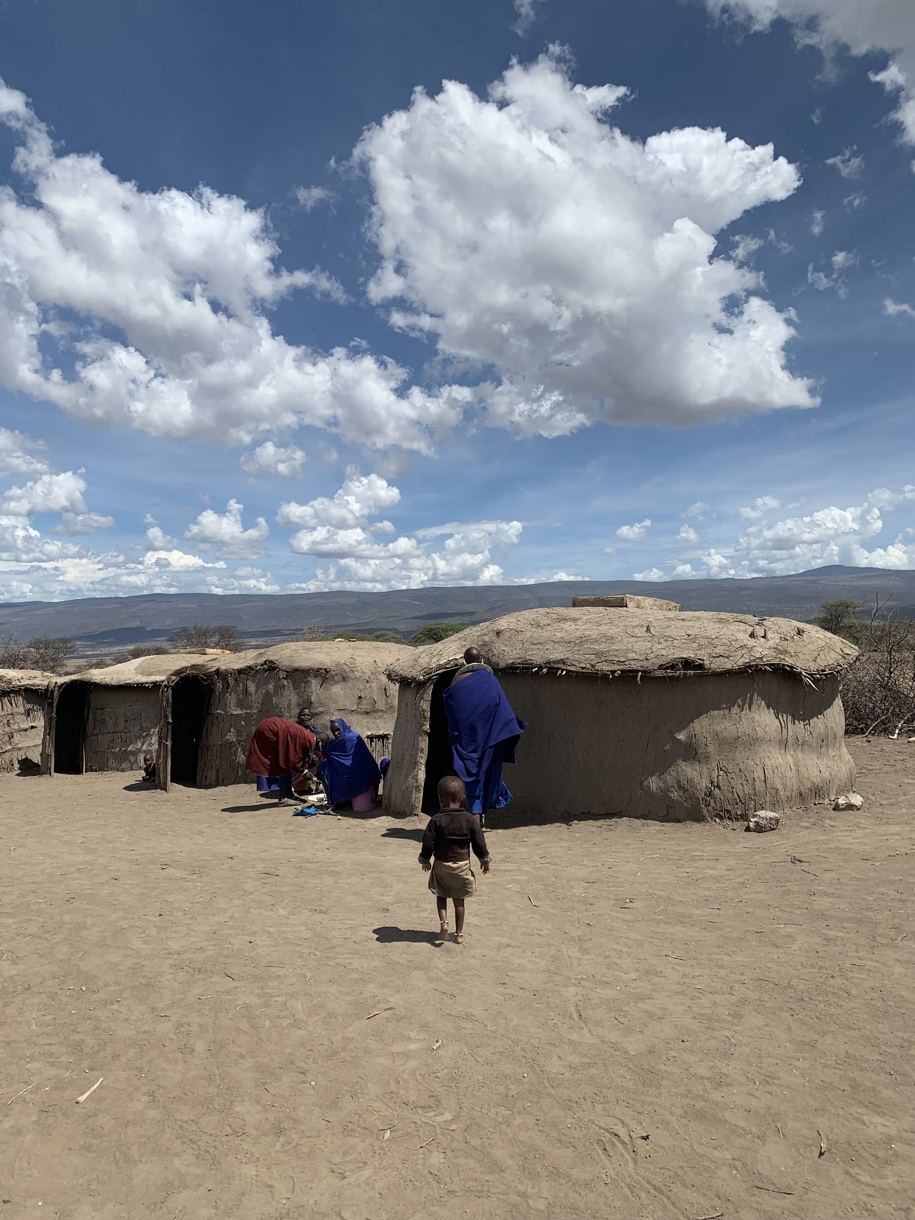 Leaving the park, we stopped at a Maasai village, where we were welcomed with singing and led through the bomas—traditional homes made of branches, mud, and dung. Some of the women placed their circular beaded collars around our shoulders, and we joined a short dance. One man who introduced himself as a prince—and said he had three wives—asked if I wanted to be the fourth.